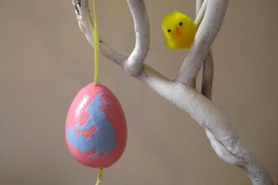 Ok so I did actually finish my Easter branch! I actually started this project last Easter so it was good to get them done 12 months later. These things always look so easy in magazines, and fast! Not this project. between two layers of white paint, two layers of coloured paint, cutting out 24 little rabbits, gluing said rabbits, getting holes in the top and bottom of the eggs, estapolling, threading ribbon and putting them no the tree - well really it's a bit of a to-do and I don't recommend it for the time poor.